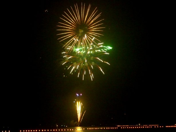 水上スターマインがいいかんじで湖上に咲きます。でも