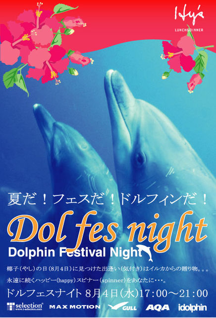 ドルフェスナイト8月4日(水)17:00~21:00 前売り2500円ワンドリンク付(当日プラス300円)