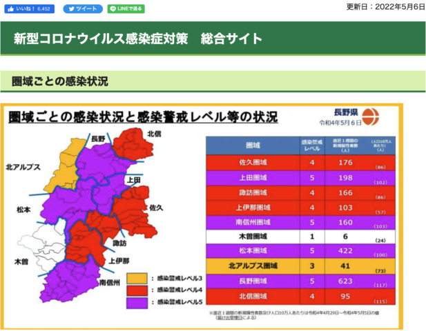 初夏が始まりました👒日差しの強さが既に夏の様です。長野県では全県医療警報が発出され、長野圏域の感染警戒レベルが5のまま始まったゴールデンウィークは、終盤を迎えています。当然、観光客の行動範囲変化に伴い、長野県内の感染者数はこれから大きく変動していくことでしょう。